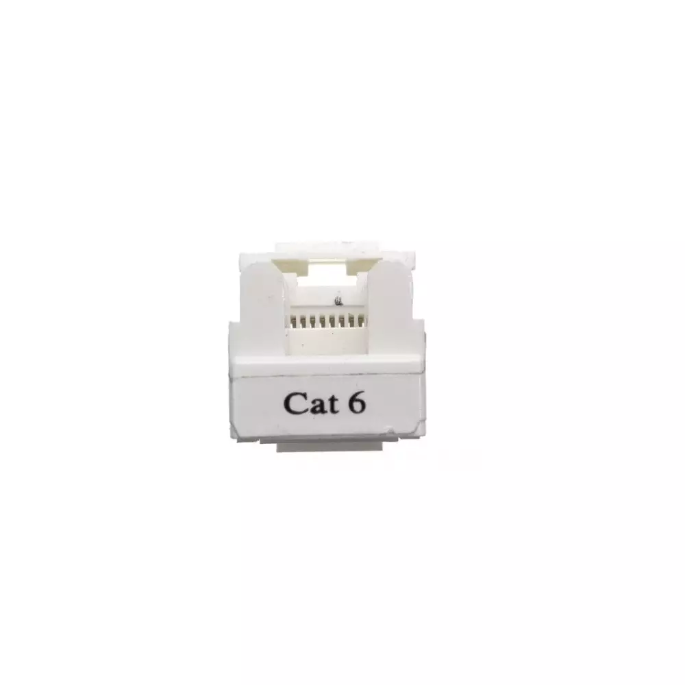 Fabricado en termoplástico resistente a altas temperaturas y de color blanco, el módulo hembra keystone ofrece un rendimiento que excede todos los requisitos para componentes de Categoría 6. Garantiza transmisiones de datos con un ancho de banda de 250 MHz y velocidades de hasta 1 Gbps. Su estabilidad y fiabilidad a largo plazo lo hacen ideal para conexiones entre el área de trabajo y el área de equipamiento.