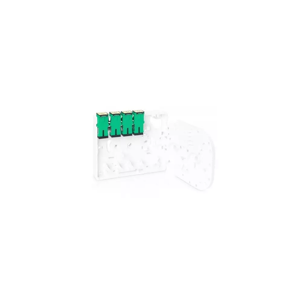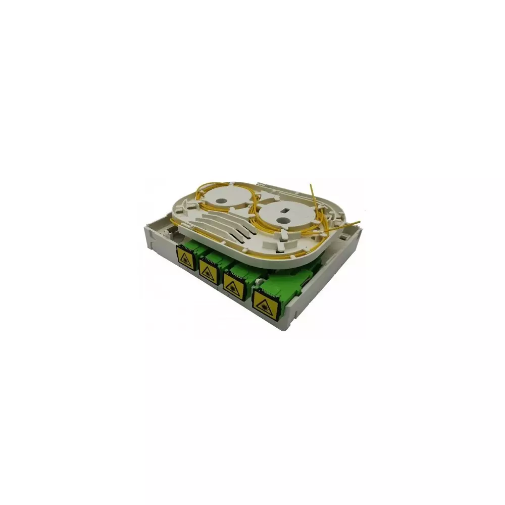 Caja de fibra óptica está especialmente diseñada para albergar hasta 4 adaptadores, ya sean del tipo SC simplex o LC dúplex, en una configuración sin alas. Se destaca por su sistema de identificación por colores, lo que facilita la diferenciación rápida y eficiente de cada puerto. Además, su diseño compacto y funcional permite una instalación sencilla y una gestión eficaz del cableado, lo que la hace ideal para aplicaciones en pequeñas y medianas instalaciones de telecomunicaciones.