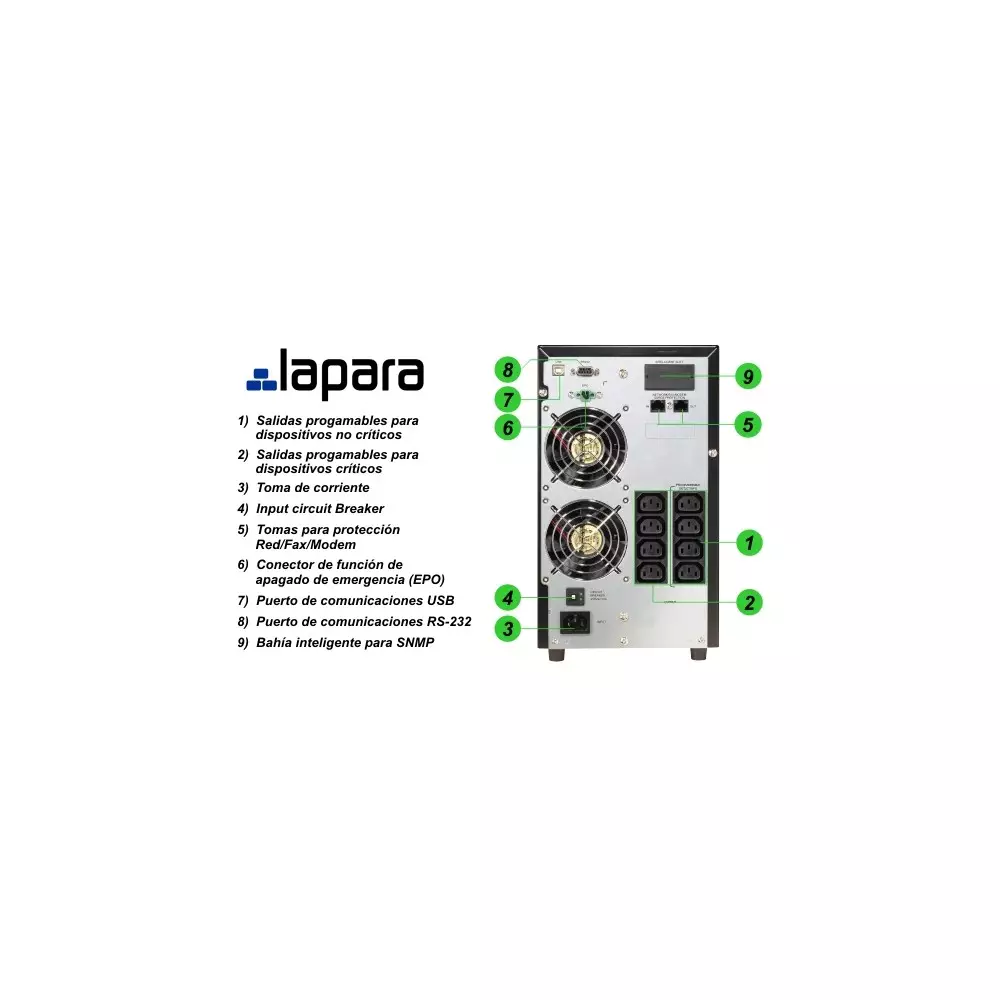Equipado con un avanzado microprocesador múltiple y tecnología de doble conversión real, este sistema asegura una protección robusta y confiable para sus equipos esenciales. La gama Lapara Online, con modelos que varían de 1000 VA a 10000 VA (1 - 10 KVA), proporciona una capacidad suficiente para manejar breves interrupciones de energía o mantener operativa su empresa durante cortes prolongados, hasta que se restablezca la energía.